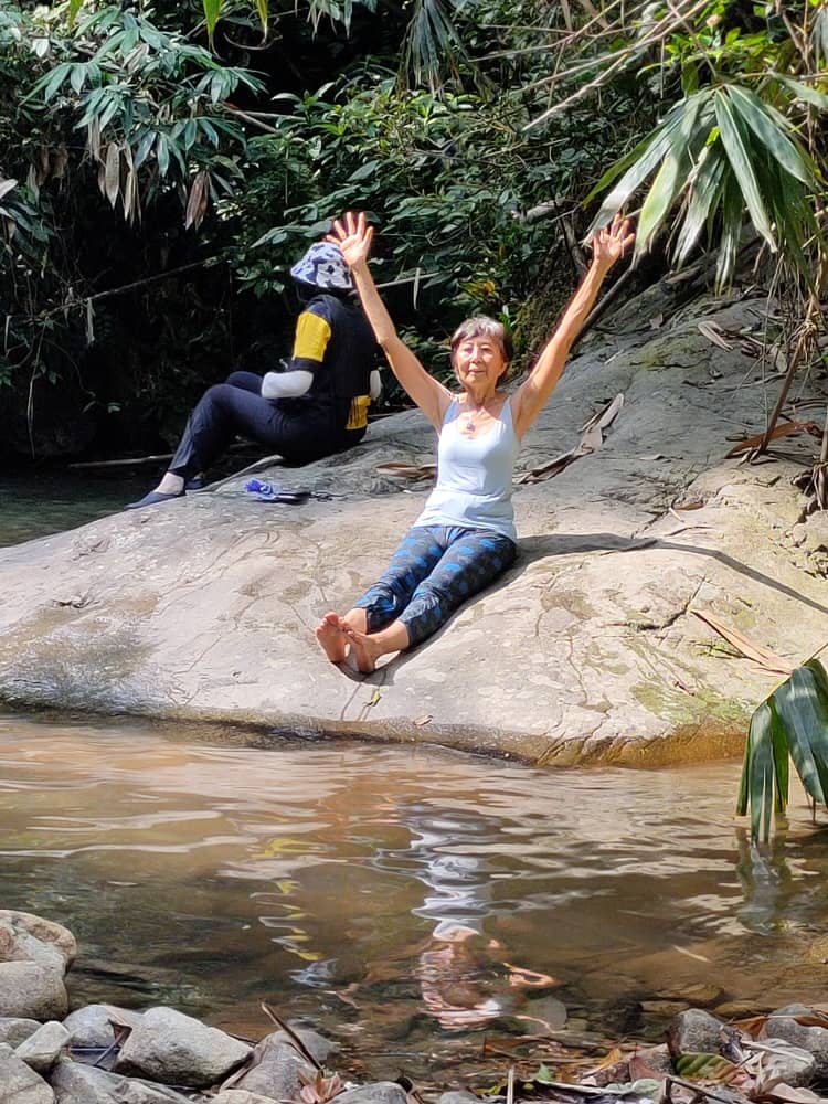 After 45 minutes we reached the waterfall. I wanted to wade barefoot in the icy water but slipped and fell in – up to my neck! To keep warm, I swam furiously, breathing in deeply the negative ions from the cascading water.